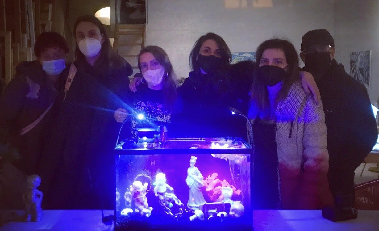 Both Christina and I (Ish) really appreciated that while we were in grad school during COVID, you organized events like Bubbles, the art gallery in a fish tank (where an exhibition would take place for a few hours, live-streamed from the fish tank), and would open up your studio. At a time when social events were increasingly dispersed, this really helped to foster a sense of community. You and your brother Scott have been organizing events like this for years, like Dark Fair, Drunk v Stoned at Gavin Brown, and the Club Nutz. How did some of those projects come about, and what were some of the difficulties and enjoyments of working on them?
